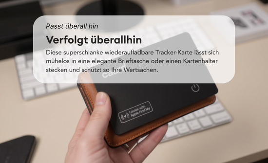 Unsere ultraschlanke Tracking-Karte verbindet sich mit Apple Find My.
